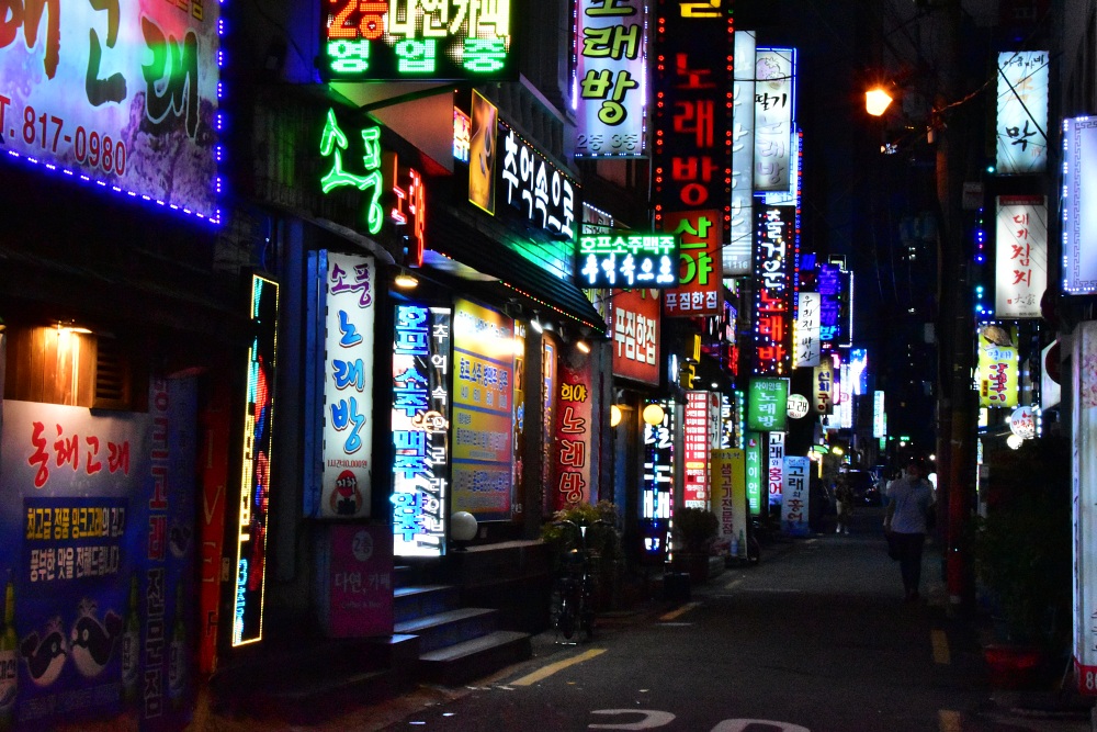 밝은 사진과 어둔 사진을 보면 현격한 차이를 느끼실 겁니다. 저는 지금 구도를 말하는 게 아니라 밤의 모습과 낮의 모습이 얼마나 다르냐를 말하고 있습니다. 낮은 모든 것이 환히 보입니다. 간판, 글씨, 길, 사람, 전봇대 등등 거의 모두 보입니다. 하지만 밤이 되면 어떤가요? 빛이 없기 때문에 간판만이 밝게 보이고 나머지는 보이지 않거나 희미하게 보입니다. 우리는 어둠이 내린 것을 보고 '아 밤이구나'를 압니다.