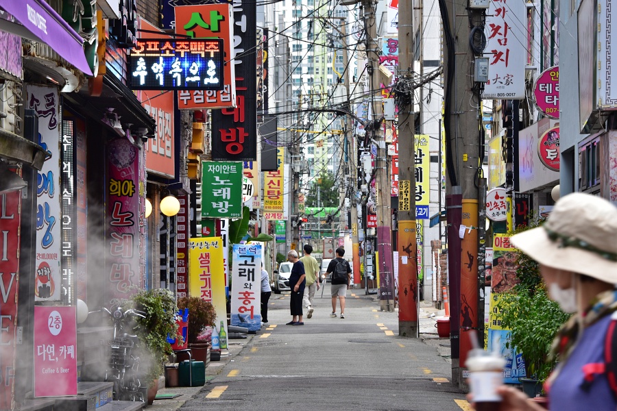 사진을 찍다 보면 글쓰기와 많은 부분 닮아 있다는 것을 느낍니다. 며칠 전 부산 서면 문화로에 다녀왔습니다. 오후부터 저녁까지 이어진 덕에 시간대 별로 다른 사진을 얻을 수 있었습니다. 안타깝게 삼각대를 가지 가지 않아 높은 질의 사진은 얻을 수 없었지만 비교가 되는 사진은 얻을 수 있었습니다. 먼저 아래의 사진을 보시기 바랍니다. 편의상 왼쪽 밝은 사진을 사진(1)로 오른쪽 어둔 사진은 사진(2)로 표기합니다.