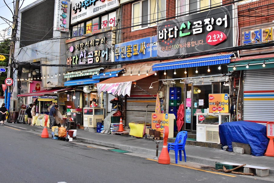 저는 카메라나 스마트폰으로 사진을 많이 찍습니다. 며칠 전에도 부전역 탐방 갔다 앞에 곰장어 거리에서 특히한 단어를 보고 사진을 찍어 뒀습니다. 왜 곰장어가 아니고 꼼장어일까요? 단지 부산 사투리일까요? 뭔가 사연이 있을 같지 않나요? 알아보면 재미 있겠다 싶어 일단 찍어 뒀습니다.