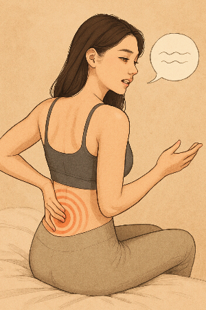 허리는 인간의 신체 구조에서 중심을 잡는 부위이며, 삶을 지탱하는 ‘균형’과 관련된 상징적 위치에 있습니다. 불안, 책임의 과중, 자신을 지지하지 못하는 내면 상태는 허리의 에너지 흐름에 부정적 영향을 미치며, 에너지적 막힘이 신체적 문제로 발현될 수 있습니다.