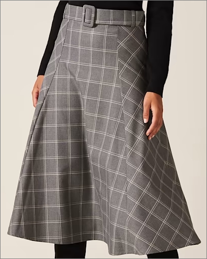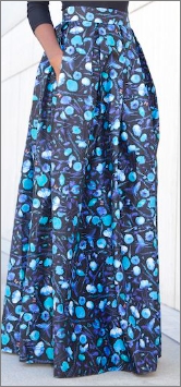 무릎과 발목 사이의 길이로 떨어지는 스커트. 무릎에서 20cm 정도 더 아래로 내려온다. 아래는 롱 미디스커트, 실제로는 아래의 사진보다 살짝 짧지만 느낌은 매우 비슷하다. 여성들이 보편적으로 많이 입는 일종의 치마이다.