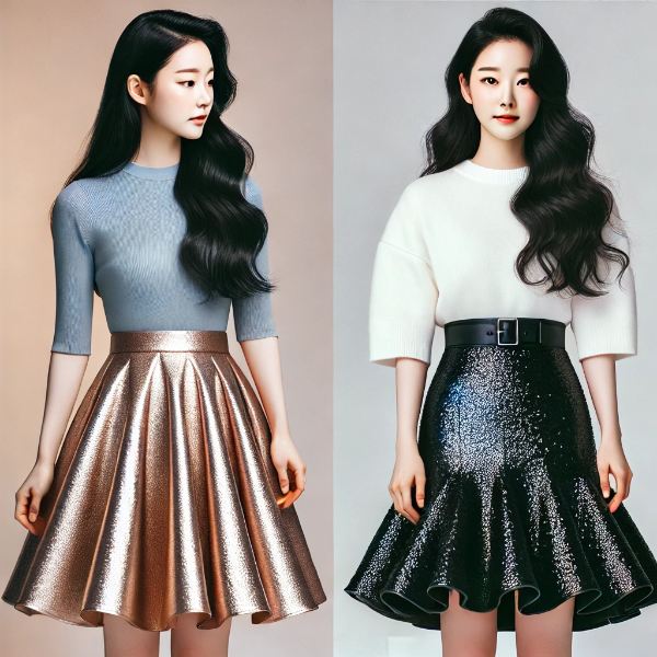 자 그럼 두 스커트의 같은점과 차이점을 보자. 트럼펫 스커트와 머메이드 스커트는 서로 비슷한 점과 차이점이 있어. 둘 다 실루엣이 독특하고 여성스러움을 강조하는 디자인이지만, 세부적으로는 차이가 있어.