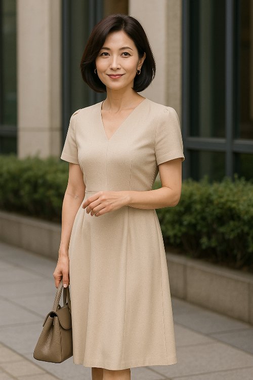 50대 초반, 이제는 내면의 여유와 품위가 자연스럽게 드러나는 나이입니다. 나이에 적합한 그런 삶의 깊이를 자연스럽게 보여줄 수 있는 가장 좋은 아이템 중 하나가 바로 원피스입니다. 이번 스타일은 단정함과 세련됨, 그리고 편안함까지 갖춘 우아한 미시룩 원피스 스타일링입니다.