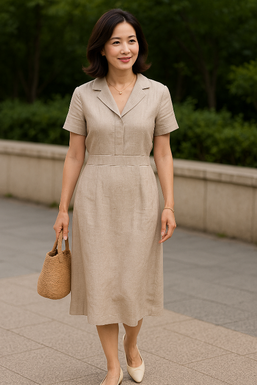 50대의 여름은 '나답게 멋스러운 계절'이 될 수 있습니다. 린넨 원피스 한 벌로, 오늘 하루의 분위기를 바꿔보세요.