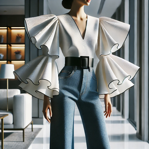 플레어 슬리브 블라우스는 소매가 넓게 퍼지기 때문에, 슬림핏 팬츠나 스키니 진과 잘 어울립니다. 이렇게 하면 상체의 볼륨을 균형 있게 잡아줄 수 있습니다.