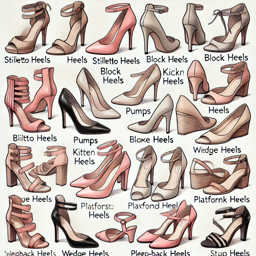 하이힐은 굽의 높이와 모양, 디자인에 따라 다양한 종류로 나뉩니다. 각 종류는 독특한 스타일과 목적을 가지고 있어, 착용하는 상황에 따라 선택됩니다.