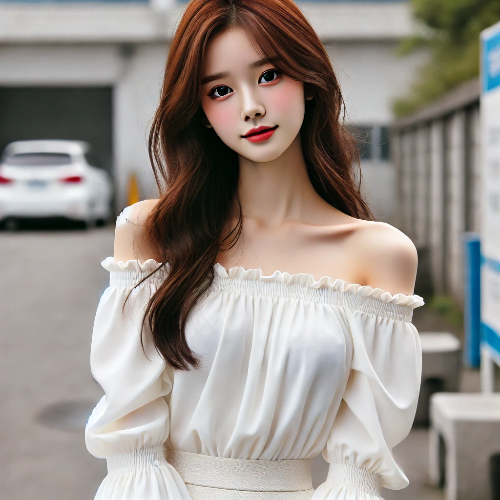 오프숄더 블라우스를 입은 여성의 스타일은 우아하면서도 여성스러운 분위기를 잘 담고 있습니다. 오프숄더 스타일은 목선과 어깨를 강조하면서도, 세련되고 부드러운 인상을 줍니다. 이 스타일은 로맨틱하고 섬세한 매력을 갖추고 있어, 깔끔하면서도 스타일리시한 느낌을 줍니다.
