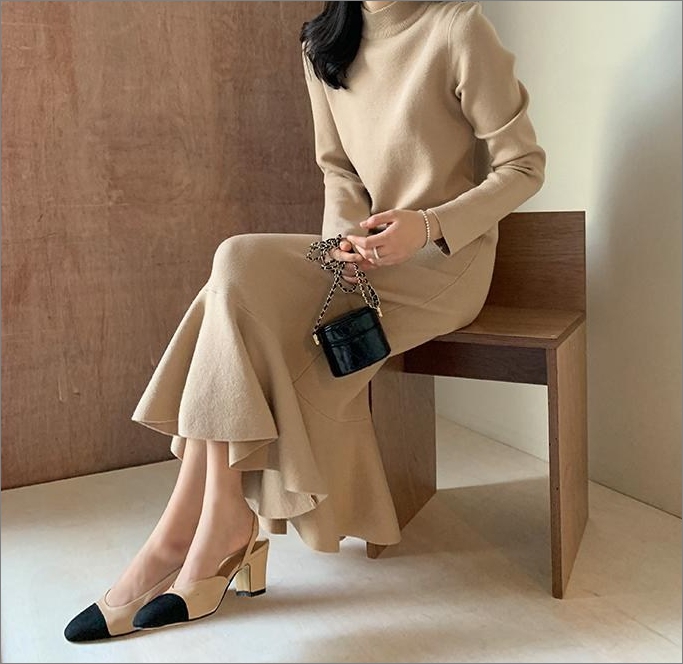 - 스타일: 니트 드레스는 단독으로도 충분히 포인트가 되며, 롱부츠와 매치해 우아한 느낌을 더할 수 있습니다. 날씨가 추울 때는 롱코트를 함께 입고, 클래식한 핸드백으로 마무리해 세련된 겨울 룩을 연출할 수 있습니다.