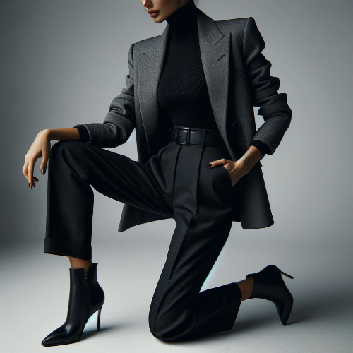 - 스타일링: 블랙 터틀넥을 하이웨이스트 팬츠와 매치하고, 그레이 테일러드 블레이저를 걸칩니다. 앵클부츠와 미니멀한 액세서리로 시크한 분위기를 연출할 수 있습니다.