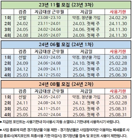 ※ 포인트 잔액 및 사용기한 (청년몰 → 나의복지 → 포인트조회 → 지급내역)