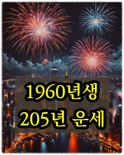 을사년은 1960년생에게 다소 변화가 많은 시기로, 성장과 도전의 에너지를 제공합니다. 이 해에는 자신의 경험과 지혜를 통해 어려움을 극복할 수 있는 힘이 있습니다. 하지만 사화(巳火)의 강렬한 기운은 때로는 지나친 열정이나 성급한 판단을 유발할 수 있으니, 신중함을 유지하는 것이 중요합니다.