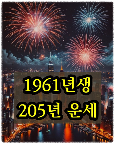 1961년생(신축생)은 을사년의 기운을 맞이하며 인생의 중요한 전환점과 성장의 기회를 경험할 가능성이 높은 해입니다. 을목(乙木)과 사화(巳火)의 조합은 새로운 에너지를 불러일으키고, 삶의 여러 측면에서 도약과 안정이 동시에 요구되는 해로 작용합니다. 2025년의 흐름을 바탕으로 1961년생의 운세를 전반적으로 살펴보겠습니다.