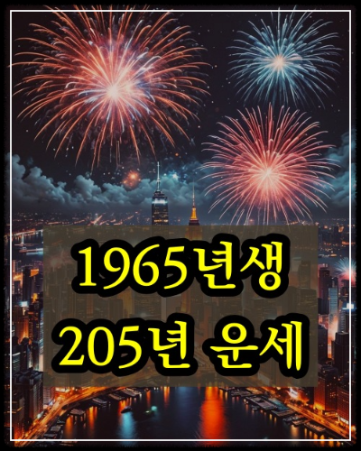 을사년의 에너지를 긍정적으로 활용한다면, 1965년생은 삶의 여러 측면에서 성취와 만족을 동시에 이룰 수 있을 것입니다. 신중함과 균형을 잃지 않으며 주어진 기회를 잘 활용하시기 바랍니다.