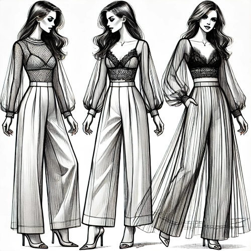 시스루 탑과 와이드 레그 팬츠의 조합은 세련되면서도 개성 있는 스타일을 연출할 수 있습니다. 이 스타일은 여성스러우면서도 모던하고 시크한 분위기를 자아내며, 특별한 자리나 트렌디한 캐주얼 룩으로 활용하기 좋습니다.