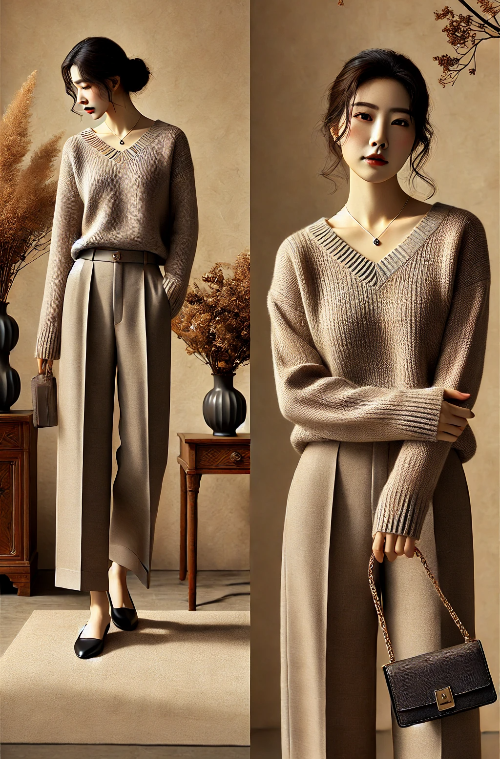 베이직한 니트와 슬랙스 팬츠는 40대 여성분들에게 편안하면서도 세련된 룩을 연출하기에 좋은 조합입니다. 특히 차분한 톤의 니트를 선택하면 자연스러운 우아함이 돋보입니다. 하의로는 일자 핏이나 와이드 핏 슬랙스를 추천하며, 로퍼나 플랫 슈즈로 마무리해 심플하면서도 멋스러운 룩을 완성해보세요.