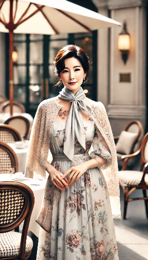 - 숄 스타일: 큰 스카프를 어깨에 걸쳐 부드럽게 늘어뜨리면 우아한 느낌이 납니다.